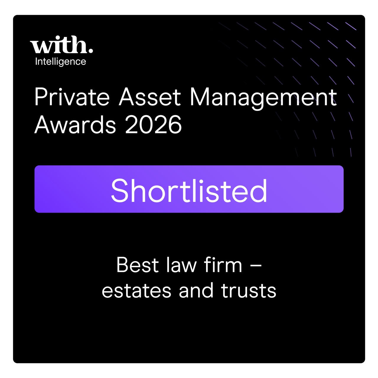 Presented by With Intelligence, the PAM Awards recognize excellence, innovation and leadership across the global private wealth, family office and private client advisory landscape. The shortlist highlights firms that demonstrate exceptional technical expertise, client service and consistent performance in an increasingly complex regulatory and planning environment.